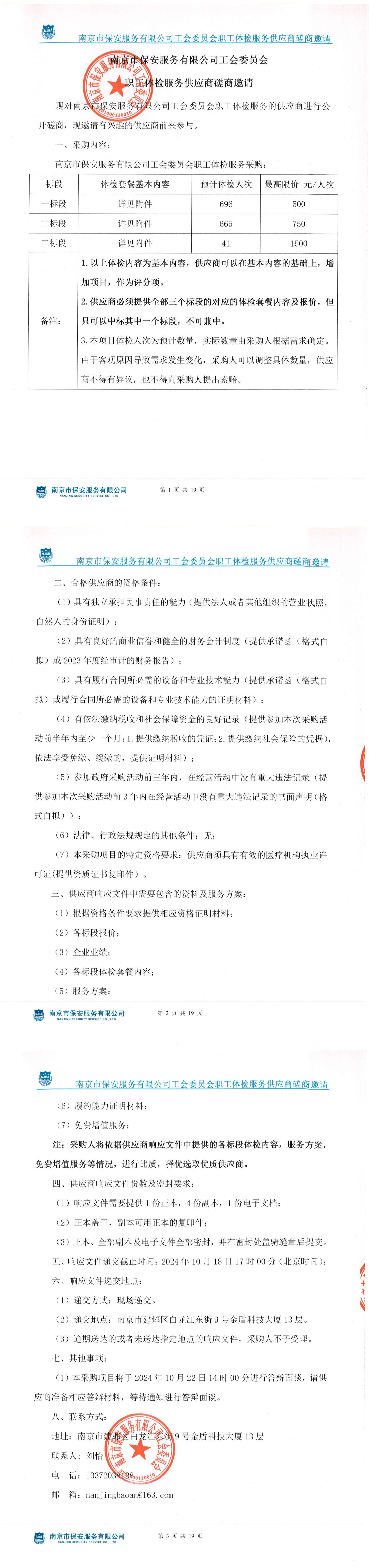 南京市保安服務(wù)有限公司工會委員會職工體檢服務(wù)供應(yīng)商磋商邀請.pdf